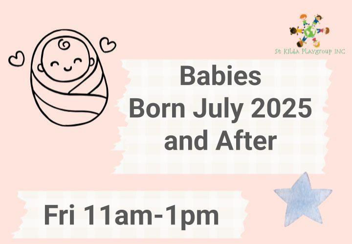Mon 9-11am. Playgroup for anyone with babies born between March-July 2025.